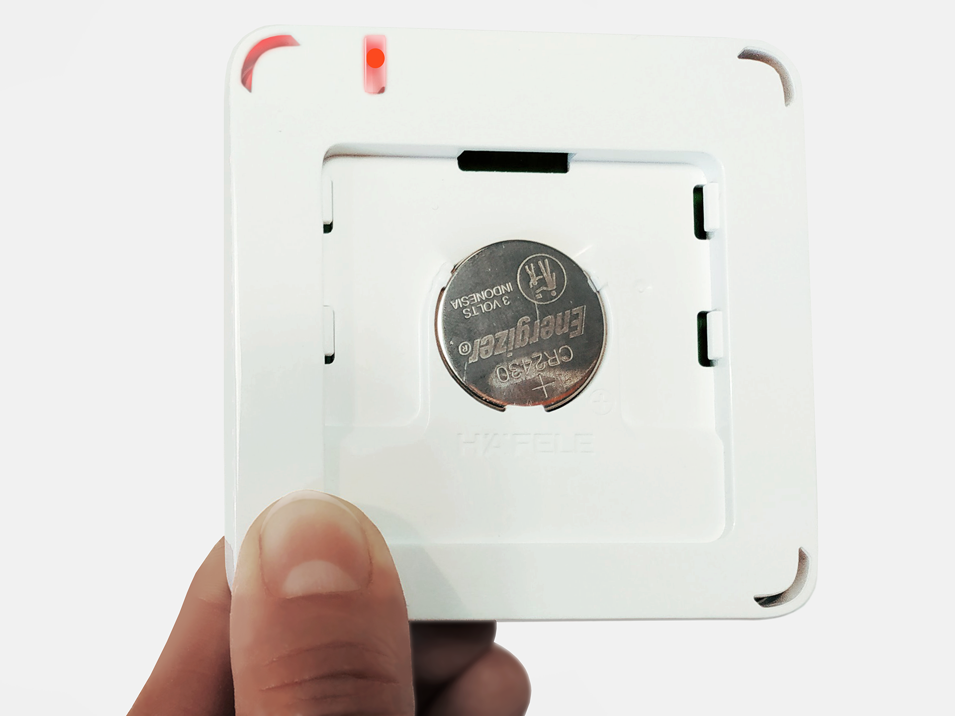Öffnen Sie das Batteriefach und drücken Sie die Reset-Taste an Ihrem Wandtaster für volle 8 Sekunden, bis das rote LED anfängt zu blinken.