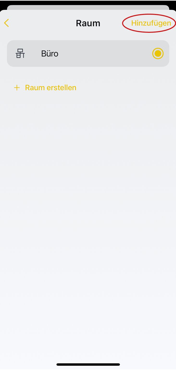 Falls noch kein Raum vorab erstellt wurde, klicken Sie auf "+ Raum erstellen" und wählen Sie den passenden Raum aus. Klicken Sie dann auf "Hinzufügen".