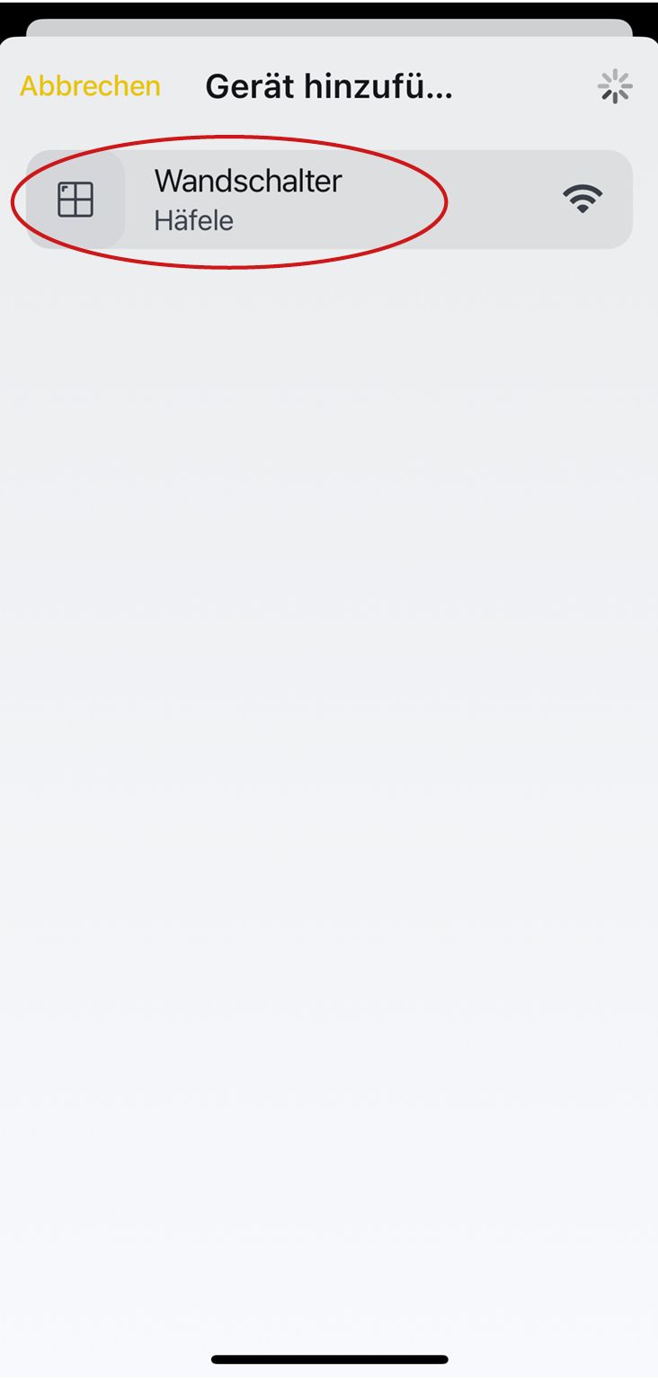 Nun erscheint eine Auflistung. Die App verbindet sich mit dem Wandtaster um die Konfiguration vollständig abzuschließen.