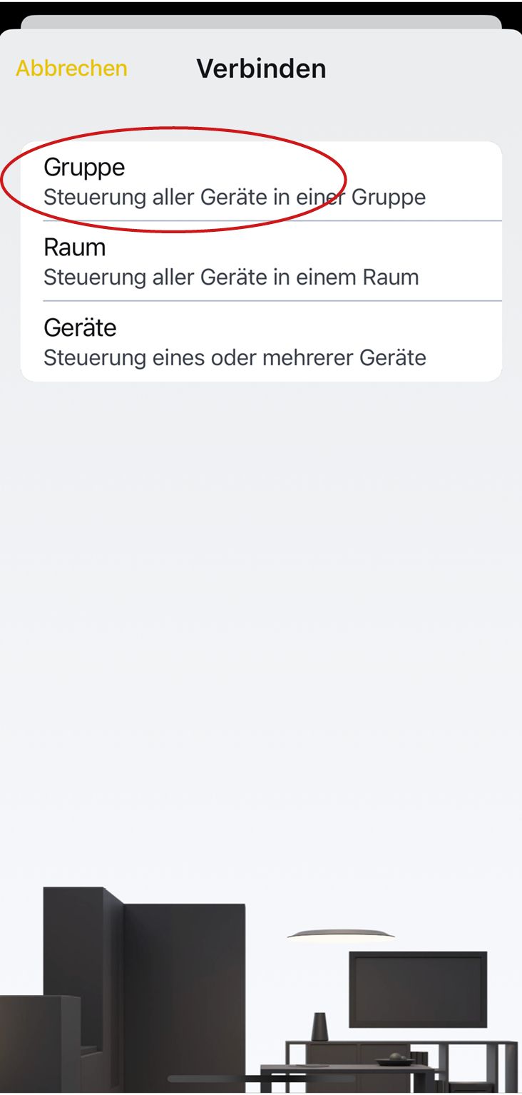 Die Mesh Box sollte bereits in der APP eingelernt und eine Gruppe angelgt sein