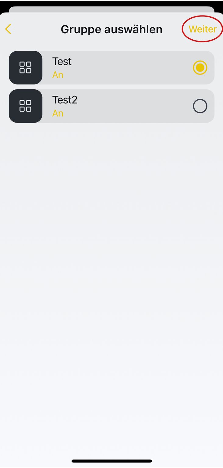 Ihre Gruppe, die Sie vorab angelegt haben, wird nun angezeigt. Wählen Sie die Gruppe aus, die vorab angelegt wurde. Klicken Sie auf "Weiter".