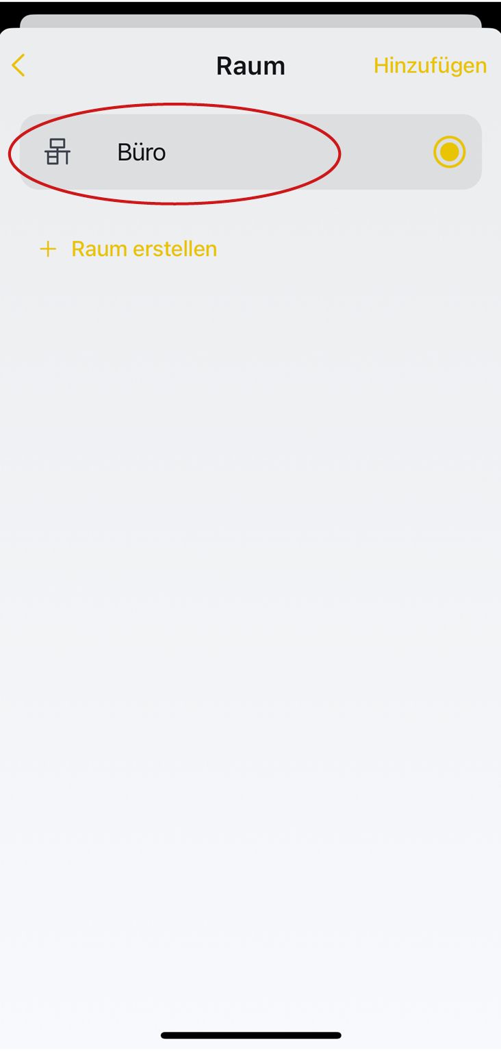 Falls noch kein Raum vorab erstellt wurde, klicken Sie auf "+ Raum erstellen" und wählen Sie den passenden Raum aus. Klicken Sie dann auf "Hinzufügen"