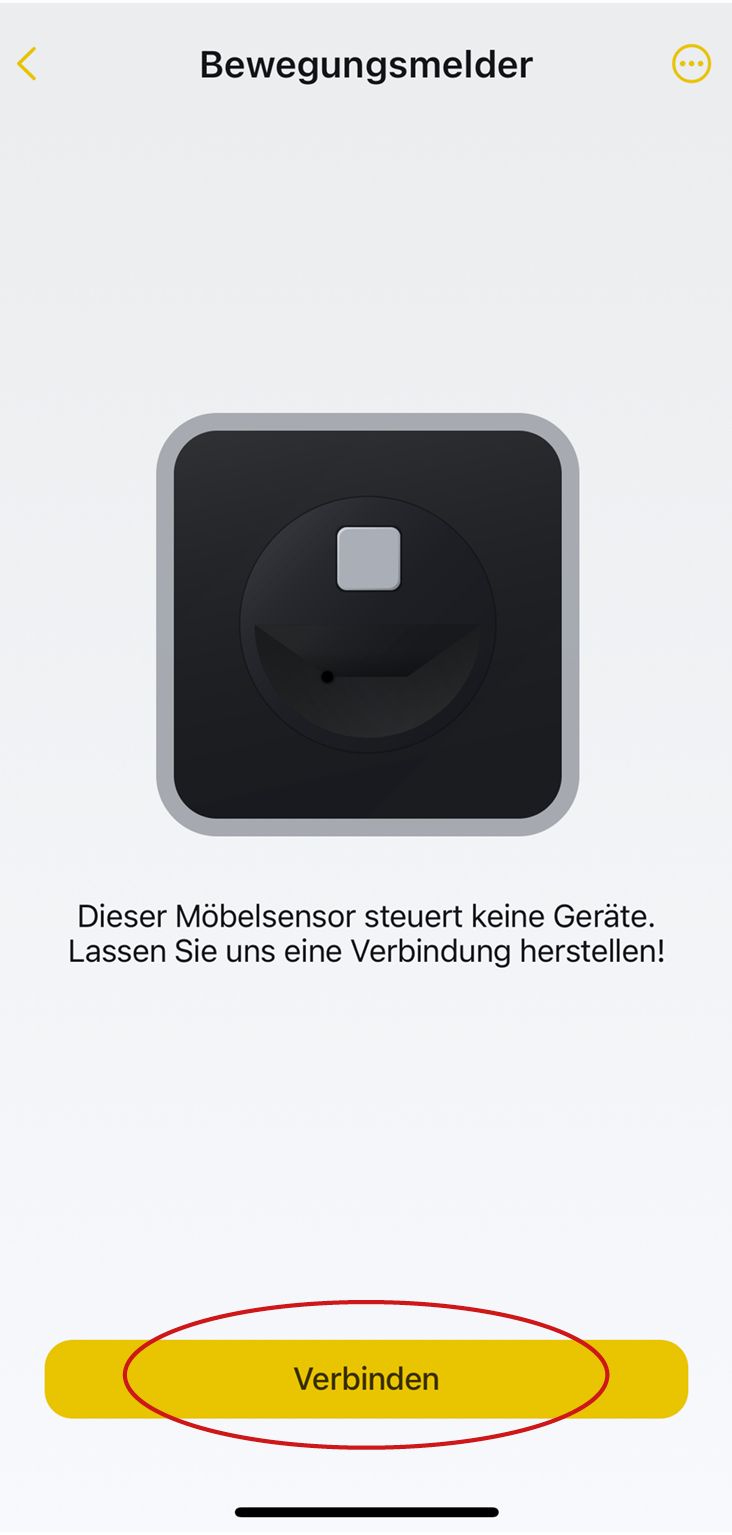 Wählen Sie den Button „Verbinden“, um den Bewegungsmelder zu konfigurieren.