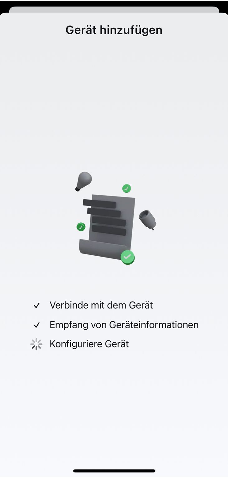 Nun erscheint eine Auflistung. Die App verbindet sich mit dem Gerät um die Konfiguration vollständig abzuschließen
