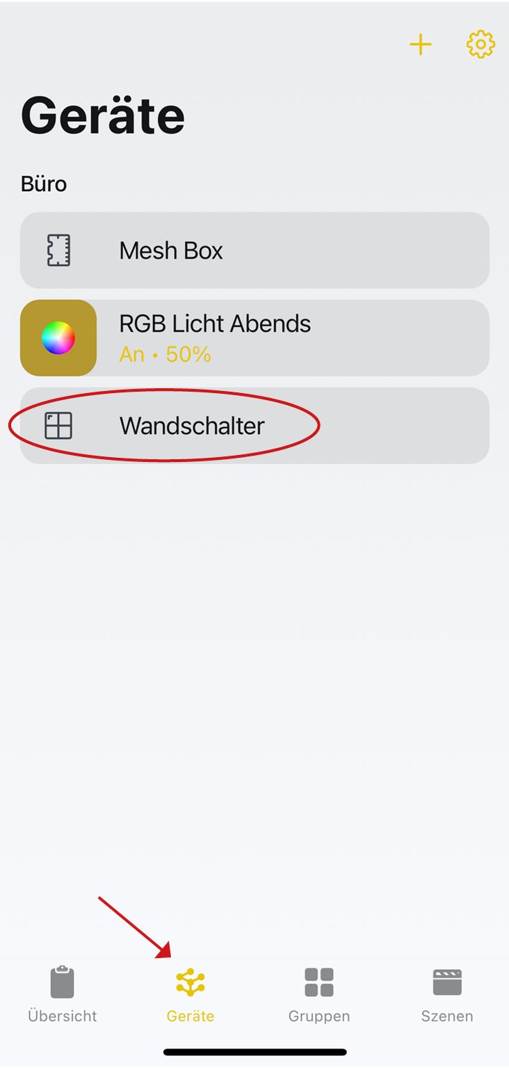 Wählen Sie die Rubrik "Geräte" und klicken Sie auf ihr eingelerntes Schaltgerät wie z.B. Wandschalter.