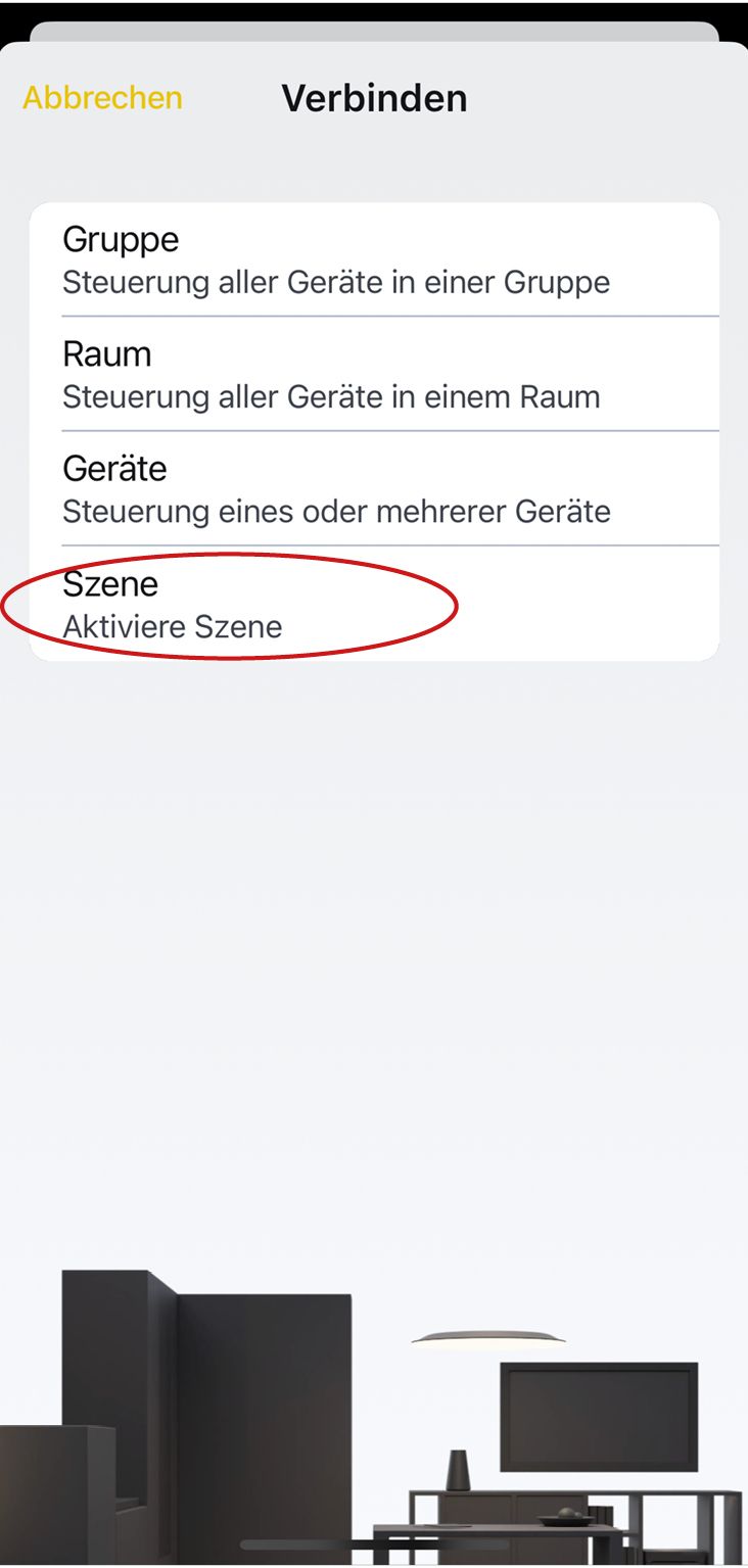Wählen Sie die entsprechende Szene die Sie der Taste zuweisen möchten.