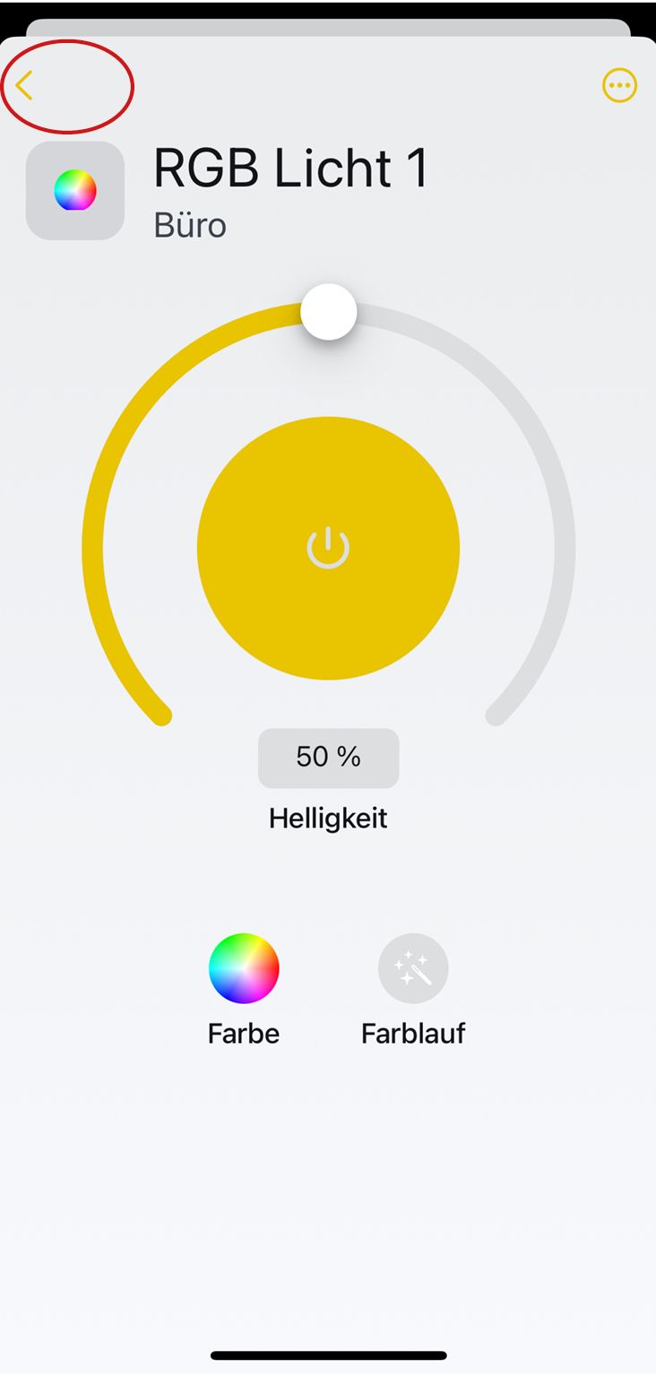 Hier können Sie nun die Helligkeit, Farbe und Farbverlauf individuell einstellen. Wenn Sie damit fertig sind, klicken Sie oben links wieder auf "zurück".