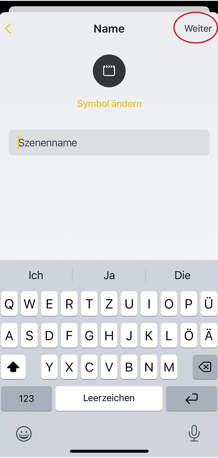 Geben Sie der Szene einen Namen und klicken Sie auf "Weiter".