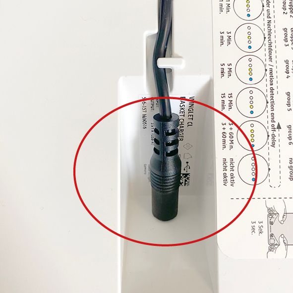 - Nehmen Sie eine Büroklammer und drücken Sie den Resetknopf. Danach sollte die Leuchte wieder einwandfrei funktionieren.